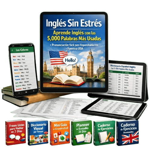 Inglés Sin Estrés es un método visual y práctico que te guía paso a paso, ayudándote a aprender el vocabulario más importante del inglés y a usarlo con confianza desde el inicio.